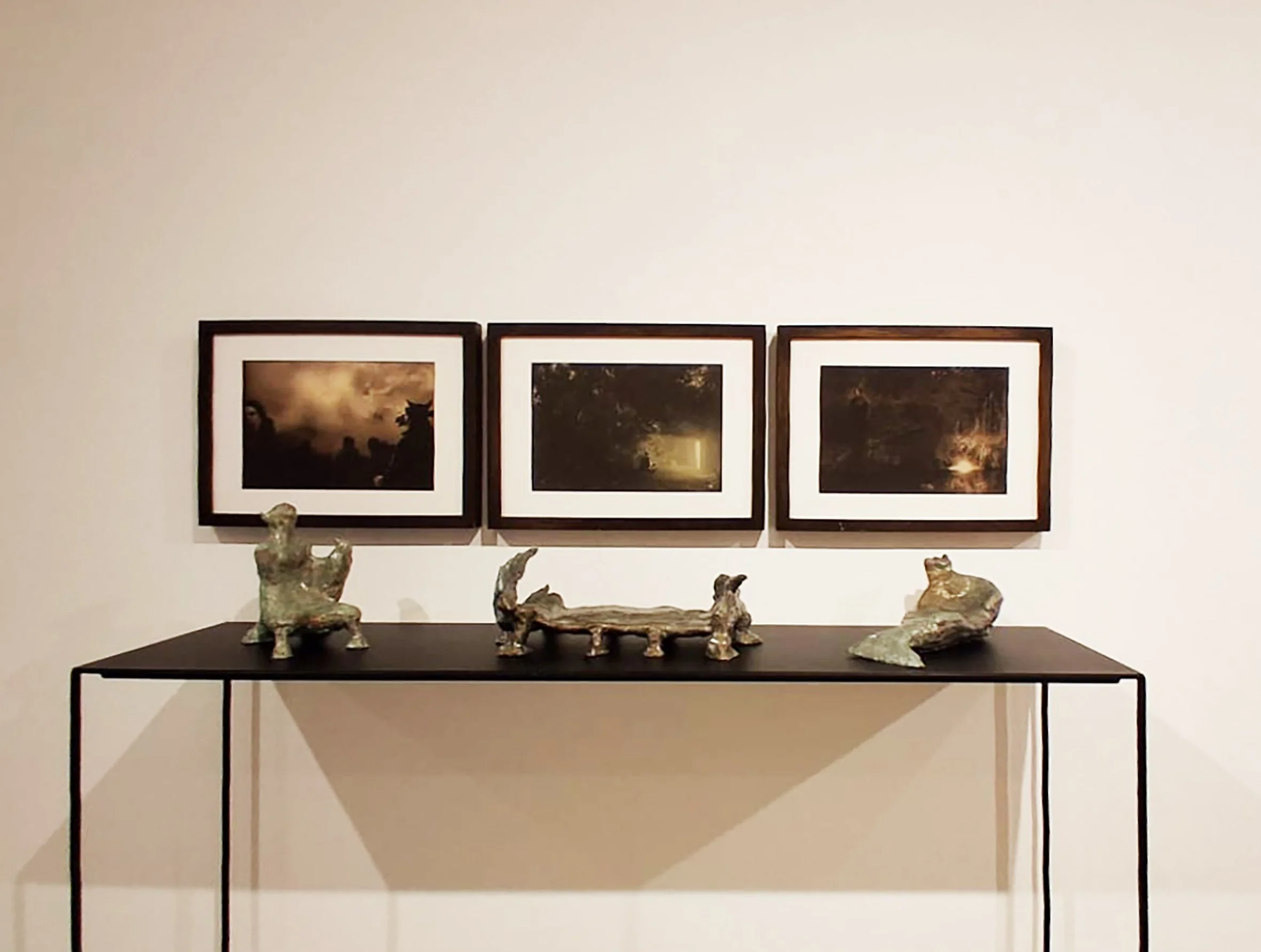 Emozione/Immaginazione/Verità, ovvero una percezione dell’opera subordinata all’immaginazione e all’emozione, che, nella ricerca di una verità fondante dell’arte, nega il primato dei sensi sulla verità dello spirito. Distinzione delle parti, separatio come operazione necessaria per nominare le forme dell’interno domestico come riflesso della nostra psiche. Solo attraverso questa operazione l’io recupera la sua unità all’interno del recinto casa- anima, nominando e identificando le singole parti dell’abitare attraverso i nomi, le figure e le immagini delle opere che ne compongono l’insieme. Una definizione delle parti per immagini e non per concetti, dando vita alle cose per il predominio di un’arte dell’espressione su un’arte della rappresentazione. Uno spazio immaginale popolato di innumerevoli figure nate da un automatismo psichico-psicotico, ovvero dalla nevrosi intesa come un percorso di conoscenza dell’indicibile. Pittura vs fotografia dunque, eccetto il caso in cui la fotografia, analogamente al disegno, venga vitalizzata da una costruzione basata unicamente sulle personificazioni di un automatismo concettuale, attraverso un universo policentrico di immagini non verbalizzabili, collocate in una molteplicità di figure spazio-temporali.
