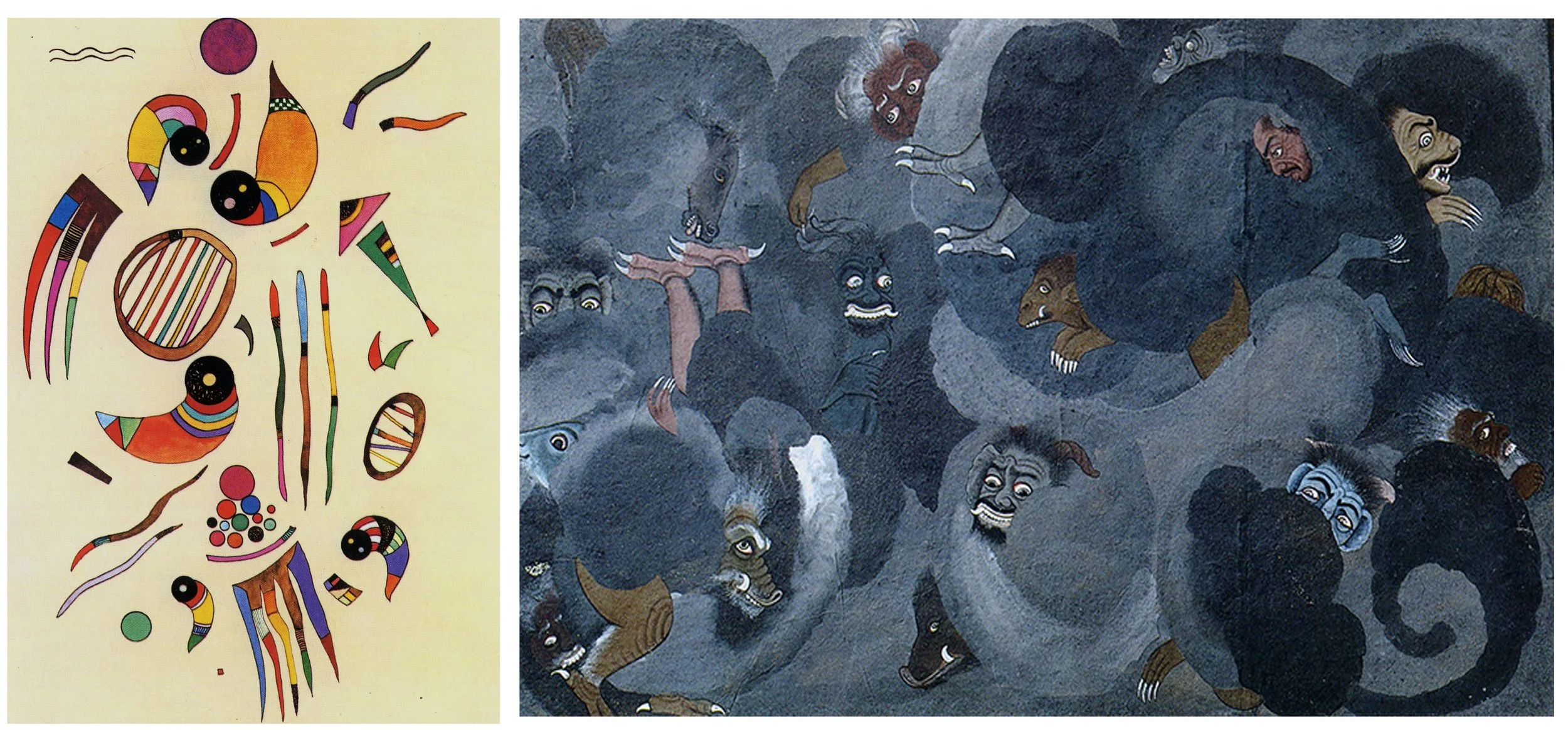 “…Queste due somiglianze fra l’arte moderna e forme di periodi appartenenti al passato sono, come è facile vedere, diametralmente diverse. La prima è esteriore e non ha perciò alcun futuro. La seconda è interiore e racchiude quindi in sé il germe dell’avvenire. Dopo il periodo della seduzione materialistica, l’anima, che dopo aver ceduto l’ha però respinta da sé riconoscendo in essa un male, emerge affinata dalla lotta e dalla sofferenza. I sentimenti più grossolani, come timore, gioia, tristezza ecc., che in questo periodo di tentazione avrebbero anche potuto essere utilizzati come contenuto dell’arte, avranno poca attrattiva per l’artista. Questi cercherà di sucitare sentimenti più delicati, che non hanno ancora nome…” (Kandinsky)